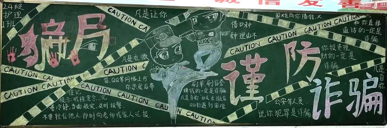 为了培养大学生防范电信诈骗的意识,在日常学习和生活中识别电信网络诈骗的能力,做好自我管理和自我教育,保护学生财产安全,促进校园和谐建设。在线观看日本www一区开展关于“平安校园,防诈有我”的主题黑板报活动。