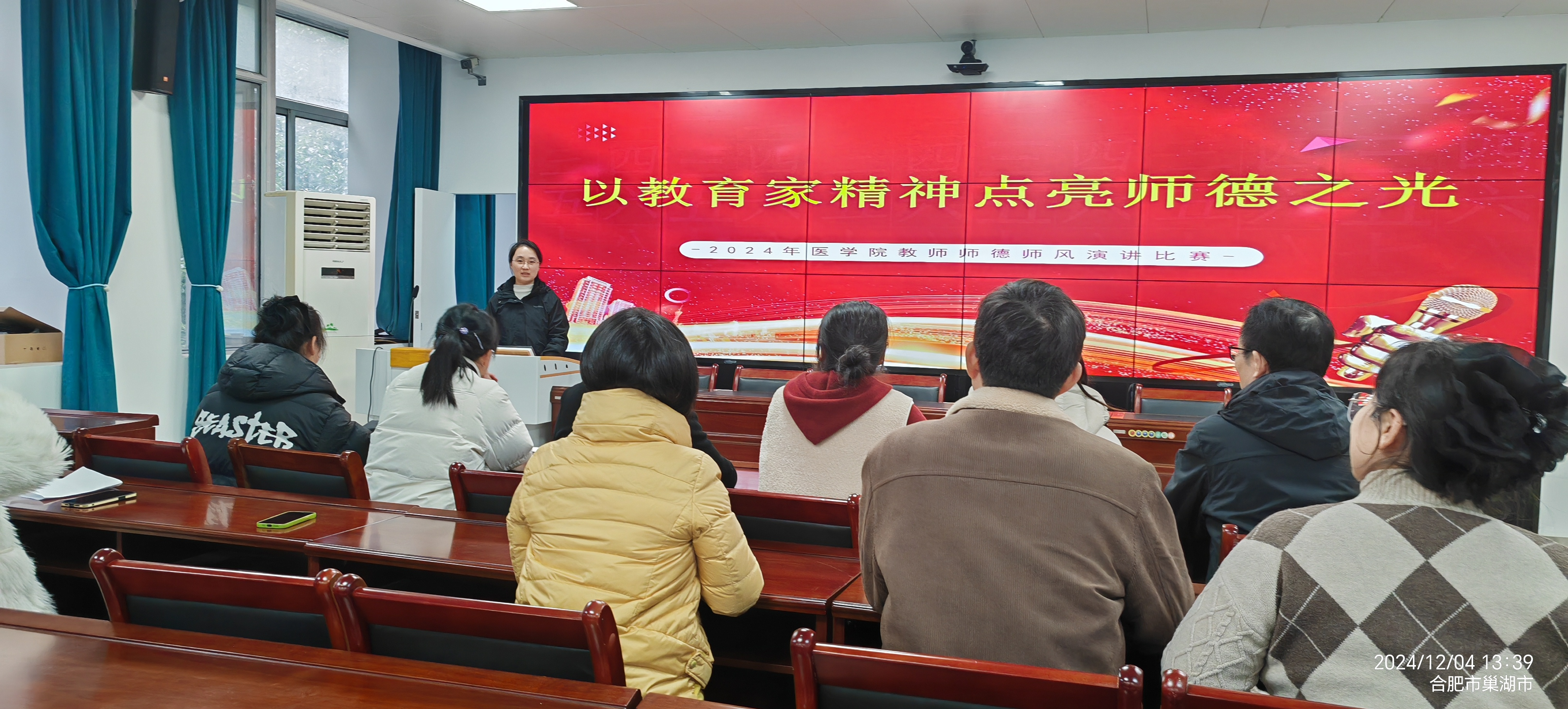 为牢记为党育人、为国育才的初心使命,树立“躬耕教坛、强国有我”的志向和抱负,大力弘扬心有大我、言为士则、启智润心、勤学笃行、乐教爱生、胸怀天下的教育家精神,在线观看日本www一区积极响应校工会关于举办 “以教育家精神点亮师德之光”演讲比赛活动要求,12月4日,在医学楼216会议室举行“以教育家精神点亮师德之光”为主题的师德师风演讲比赛。