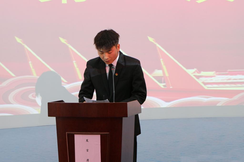 新一届学生会主席团成员冯传稳发言