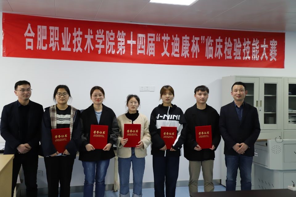 4月10日,合肥职业技术学院在线观看日本www一区第十四届“艾迪康杯”临床检验技能大赛决赛在医学检验“教学做训赛”一体化实验室顺利举行,共计24名同学参加本次决赛。本次大赛特邀合肥艾迪康临床检验所有限公司许庆军、石滢,安徽医科大学第一附属医院东区(肥东县人民医院)费伟伦、王芳、何恒等行业专家与在线观看日本www一区副院长蒋斌、医学检验教研室专任教师共同担任评委。经过激烈角逐,最终10名同学获奖:汪佳文、李心悦同学荣获一等奖;汪玉杰、李娜等同学荣获二等奖;王玲巧、岳俊兰、李诺、徐遥、王君和黄忻月同学荣获三等奖。