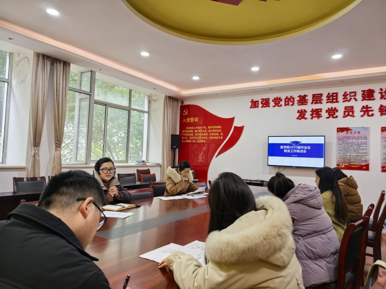 会上,梁春艳根据2025 届各专业毕业生就业、升学的实际情况以及用人单位目前的招聘动态提出,辅导员要针对性地进行个性化的就业指导,各班级要认真开展就业安全教育与就业政策宣传工作,耐心细心地做好困难生就业帮扶。医学院将利用一切资源继续充分挖掘就业岗位,竭尽全力为毕业生提供全方位的就业支持与服务,助力毕业生迈向职场。