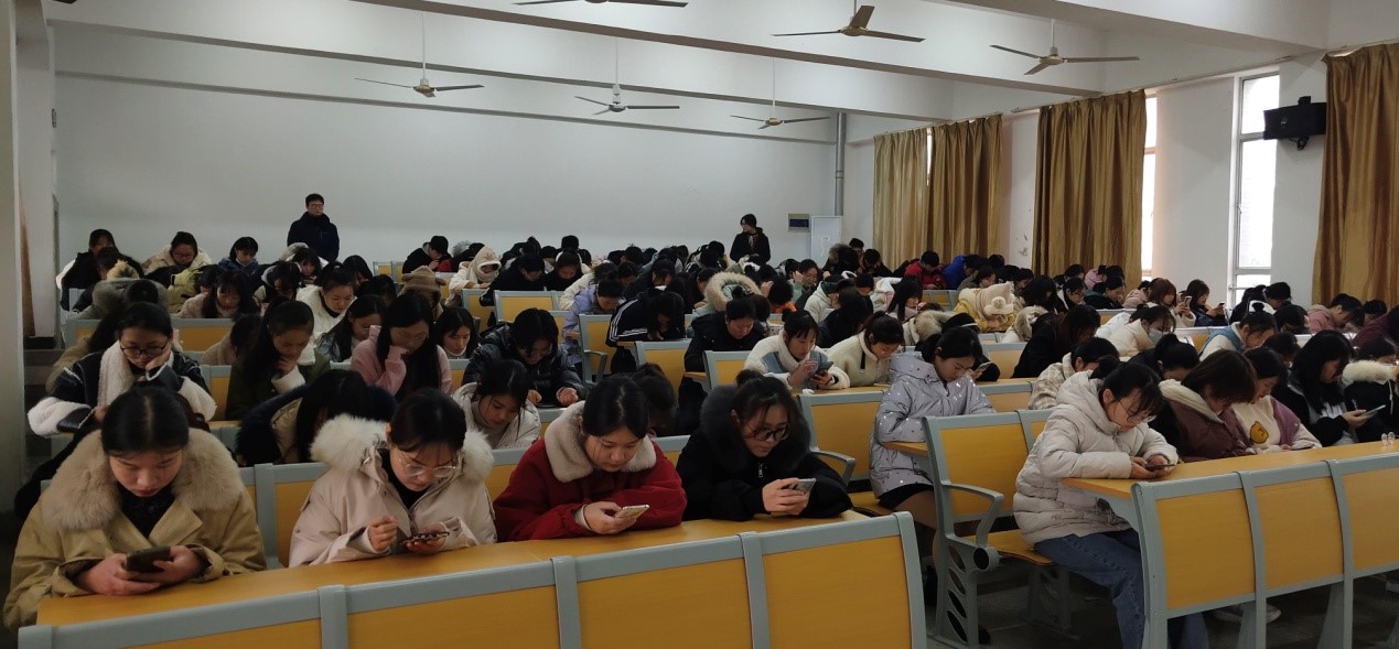 本次护理技能大赛理论考试共有600余位同学参加,分为四个主考场。为了对接省赛和国赛,理论考试考题从国赛题库随机抽取,在学习通平台发布,学生通过手机答题。本次考试目的是丰富学生校园生活、提高护理技术能力、增强同学们心理素质的理念,使同学们对护理专业知识有一定的巩固和温习,从而打下坚实的理论基础,更好的完成后面的实际技能操作考核。考试期间,监考教师认真负责,时刻关注着学生的考试状态,同学们认真答题,考试结束后试卷将统一批改,确保考试成绩的公平公正。