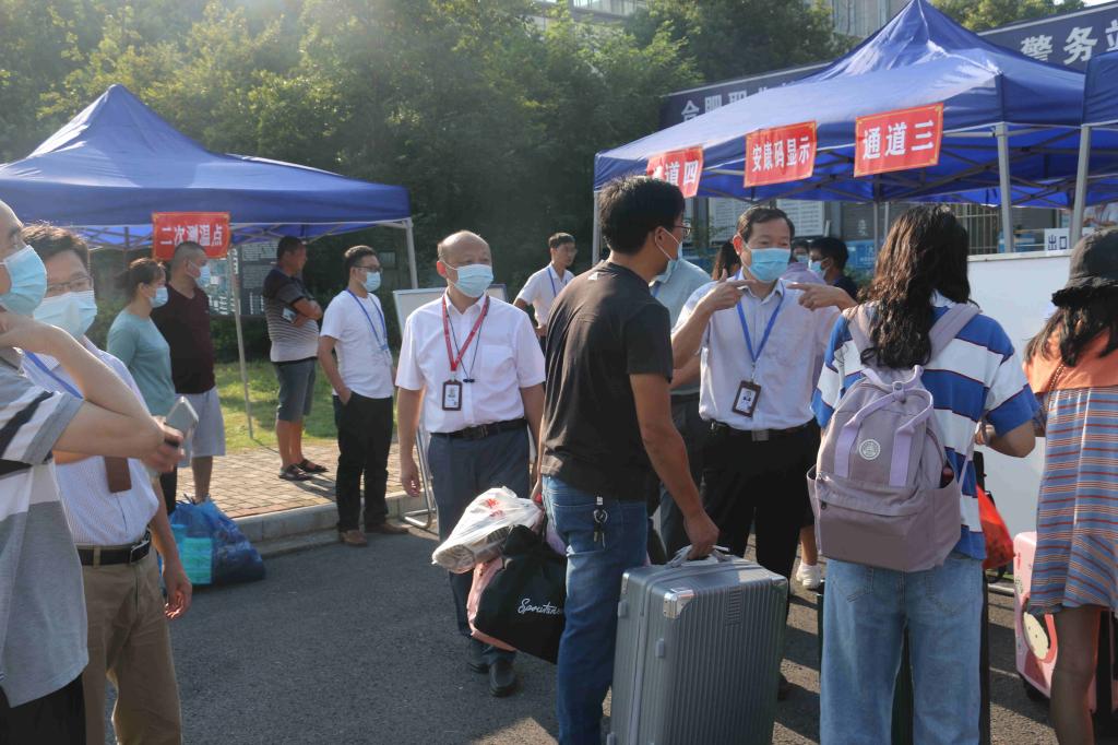 早上七点,各工作组人员已经全部到位,严格按照学校疫情防控相关要求,用扎实细致热情的工作做好学生安全返校工作。学生们按照计划时间到达校门口,间隔排队、出示身份证件、健康码,测温、消毒、登记、进校,报到现场井然有序。上午八点,学校党委书记罗兆好、副校长周晓隆、鼓山校区管委会主任周泽山、总务处、保卫处、学生处等相关部门负责人深入到在线观看日本www一区报到现场,看望返校学生,慰问工作人员。当天晚上,在线观看日本www一区班主任深入学生宿舍走访及慰问学生。走访中,老师们与同学们亲切交流,关心他们的学习与生活,提醒学生注意卫生、勤晒衣被、开窗通风、不走不窜、认真投入学习等,叮嘱同学们要继续重视个人防护,注意身体健康、心理健康,保持良好的学习生活规律。