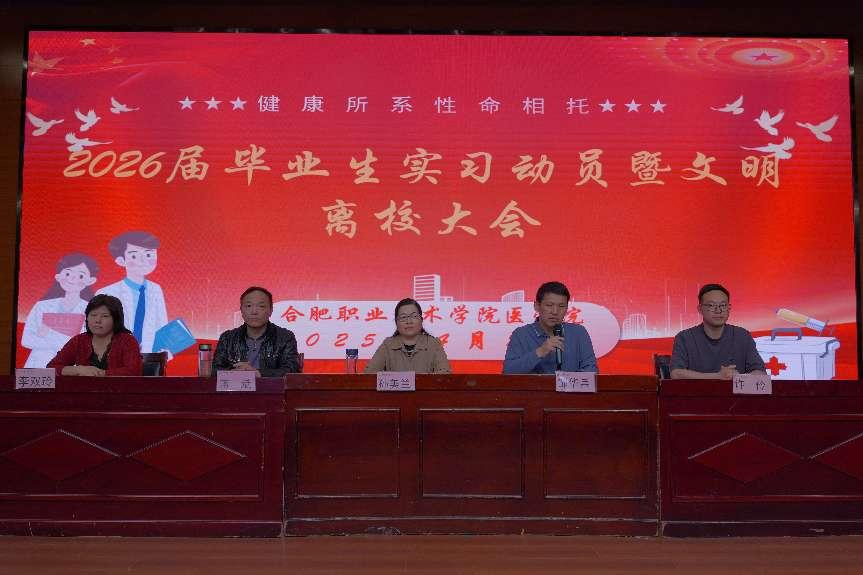为进一步做好2026届毕业生顶岗实习工作,推动实习任务高质量完成,4月23日下午,在线观看日本www一区在大学生活动中心隆重举行护理专业实习动员暨文明离校大会。在线观看日本www一区党政领导班子全体成员出席,全体2026届实习生参加,会议由党总支副书记(主持工作)邹华兵主持。