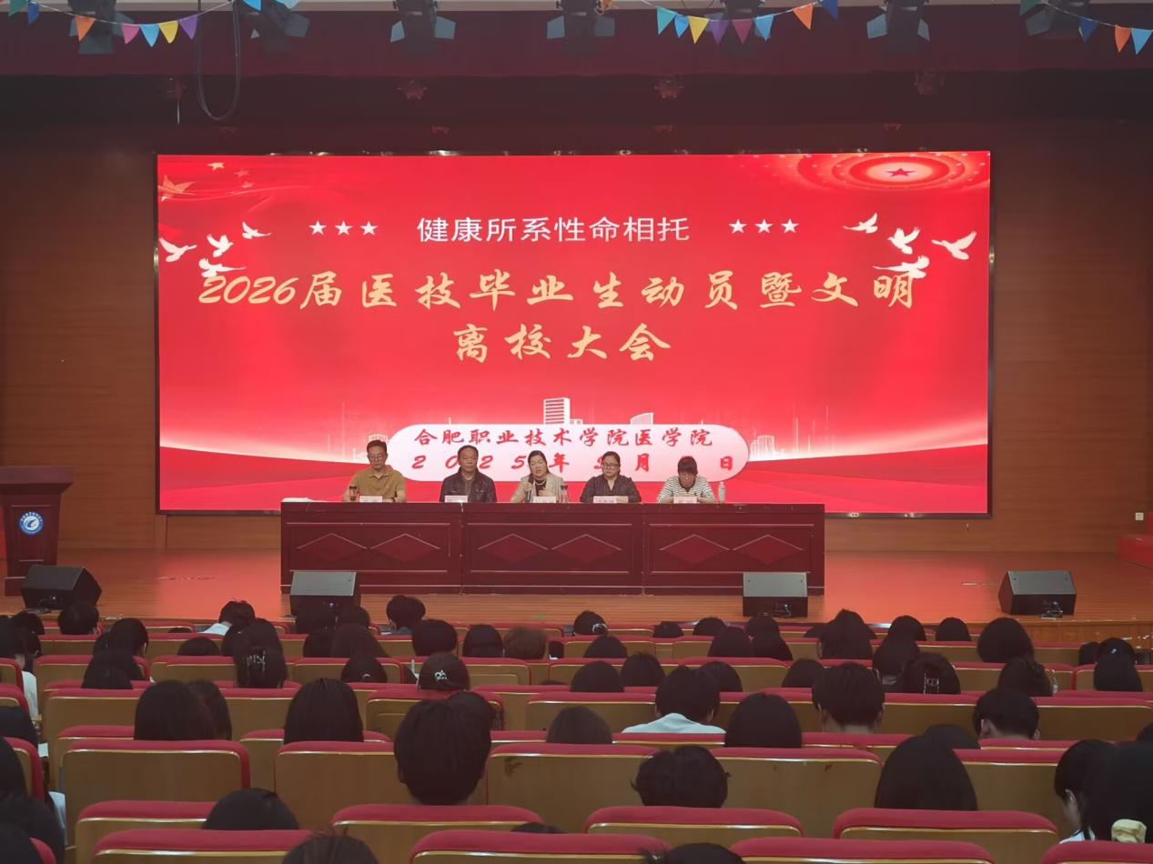 2025年5月7日下午,在线观看日本www一区在大学生活动中心隆重举行“健康所系性命相托”2026届医技毕业生实习动员暨文明离校大会。在线观看日本www一区党政领导班子、辅导员代表及400余名实习生参会。大会以“技术精进+职业敬畏”为主线,为即将奔赴50余家实习单位医技学子筑牢“幕后守护者”的使命担当。会议由党总支副书记梁春艳主持。