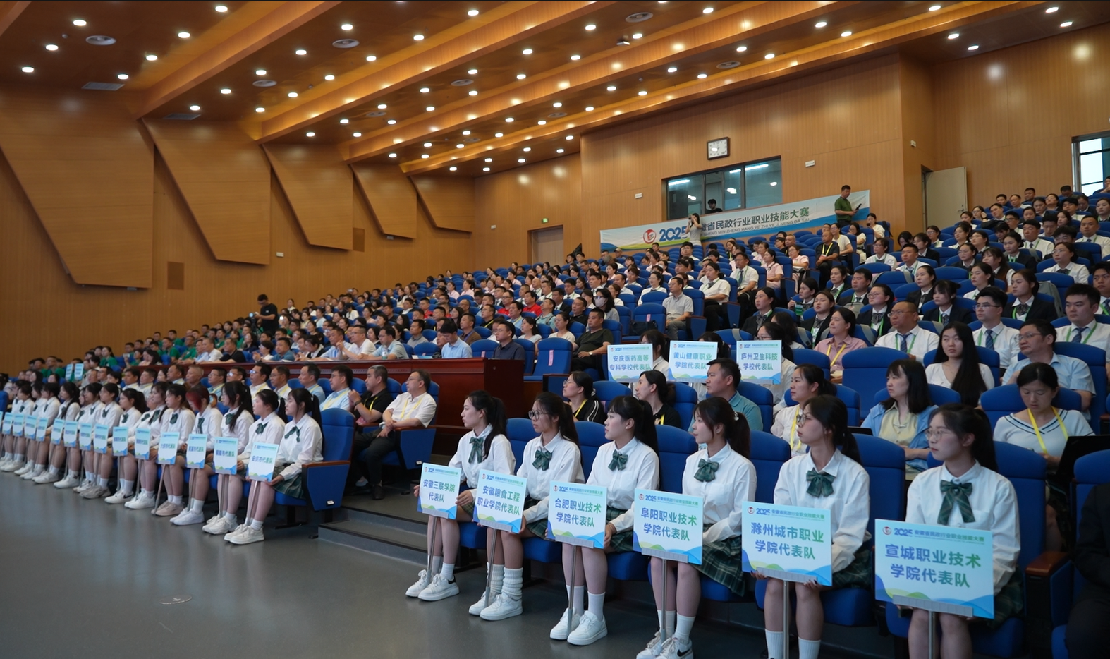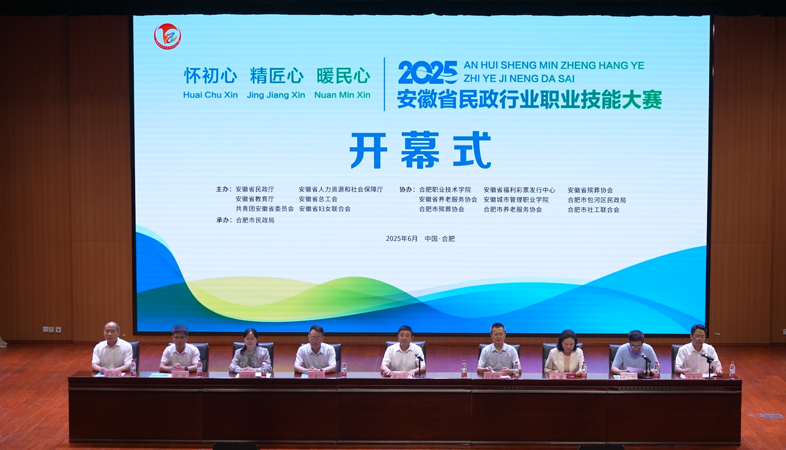 6月27至29日,为期3天的2025年安徽省民政职业技能大赛在合肥职业技术学院成功举办。大赛由合肥市民政局承办,合肥职业技术学院等9家单位协办。覆盖了安徽省16个市代表队及17所院校,参赛选手221人,包括领队、教练员、裁判员、保障人员等共737人参与。是全省民政系统首次多赛项集中办赛,是历届民政行业职业技能竞赛参赛人数最多、比赛工种最多的比赛,是我校与省市民政行业深化“校政行企”合作,体现教育链、人才链、产业链、创新链“四链”融通的比赛。开幕式上,学校党委书记王杰才致欢迎辞。