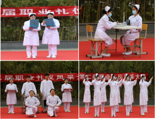 经过初赛层层选拔,共15支队伍进入决赛,每支队伍至少6人以上。本次比赛以职业礼仪表演及情景剧表演的形式,从不同方面对职业礼仪在临床工作中的应用情景进行了精彩的演绎。比赛过程中,各队选手服饰规范得体,情感饱满,分别展示了站姿、坐姿、蹲姿、持病历夹、推治疗车、端治疗盘、与患者交流沟通等项目。全场比赛,职业礼仪准确规范,充分展现了学生扎实的专业知识和操作水平,更体现了青年学子的蓬勃朝气,赢得了现场师生们的阵阵掌声。