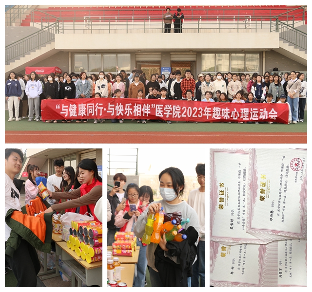2023年3月15日下午,以“健康同行,与快乐相伴”为主题的医学院第七届大学生趣味心理运动会在学校操场举行。学院相关辅导员老师以及近300名学生参加了本次趣味心理运动会。