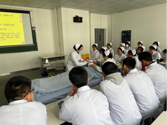 护理教研室汪蔓老师在给22护理2班的《基础护理技术》教学过程中,为了上好课下了不少功夫,从资料的查找、教具学具、教学环节的设计到资源的有机整合等等方面都作了精心的准备。学生们也都积极认真的配合,小组合作、讨论交流,课堂气氛轻松而活跃,学生们感到快乐而充实。