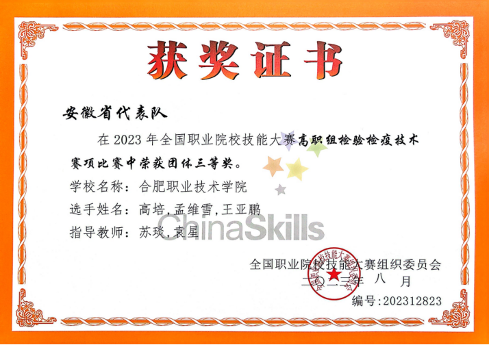 8月5日,由教育部、科技部、工信部等35个单位主办,山东省教育厅、临沂市人民政府和山东省卫生健康委员会承办,山东医学高等专科学校协办的2023年全国职业院校技能大赛高职组“检验检疫技术”赛项在山东医学高等专科学校开赛。全国28个省、自治区、直辖市的53支代表队的近200名教师和159名参赛选手参加本次比赛。我校在线观看日本www一区医检专业高培、孟维雪和王亚鹏三位同学荣获团体三等奖。