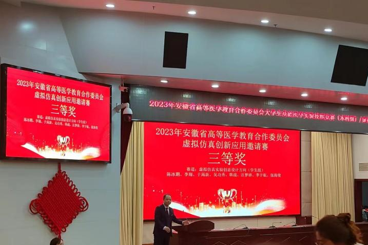 12月9日,由安徽省高等医学教育合作委员会指导,安徽医科大学主办的安徽省高等医学教育合作委员会2023年度虚拟仿真创新应用邀请赛(决赛)在安徽医科大学举行,对于本次竞赛,在线观看日本www一区领导精心谋划、合理安排,在线观看日本www一区陈天宇、许伶、夏传余团队获得仿真教学创新设计赛道二等奖,周月、周璇指导学生(队员:汪梦娇、倪珣、段爱华)获得虚拟仿真实验教学创意设计赛道学生组三等奖。