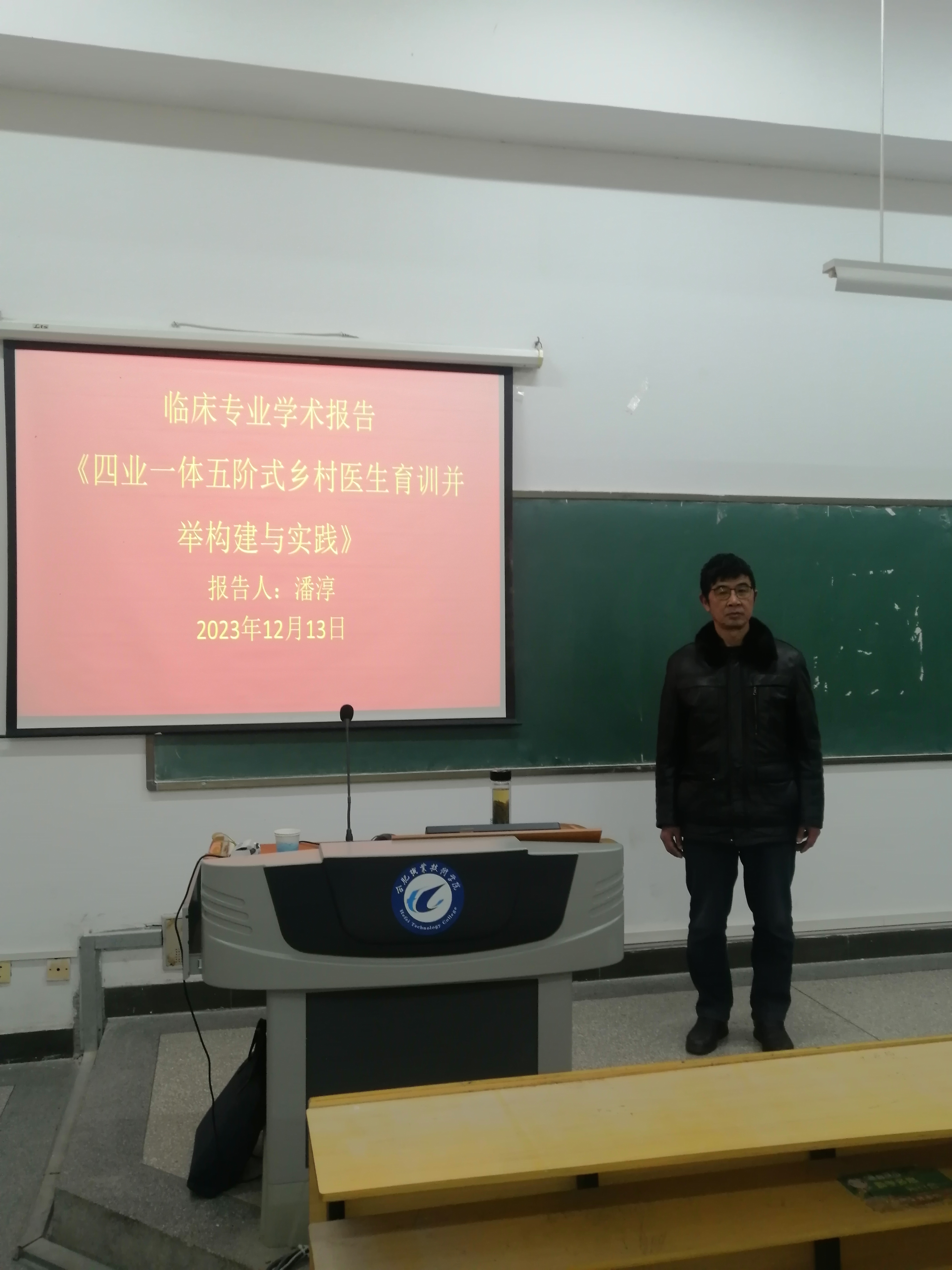 交流活动中,潘淳受邀作了《“四业”一体,“1+1+1+1+N”五阶式乡村医生育训并举构建与实践》的学术报告。报告中,潘淳剖析讲解了国家职业教育改革、新时代卫生健康工作方针,介绍了乡村医生育训并举构建与实践的教学模式创新,重点阐明了安徽省乡村医生现状、考察调研成果及培养模式创新。报告受到在场所有教师及学生的高度赞赏,会后师生就安徽省乡村医生培养情况进行了互动与交流,大家纷纷表示受益匪浅。