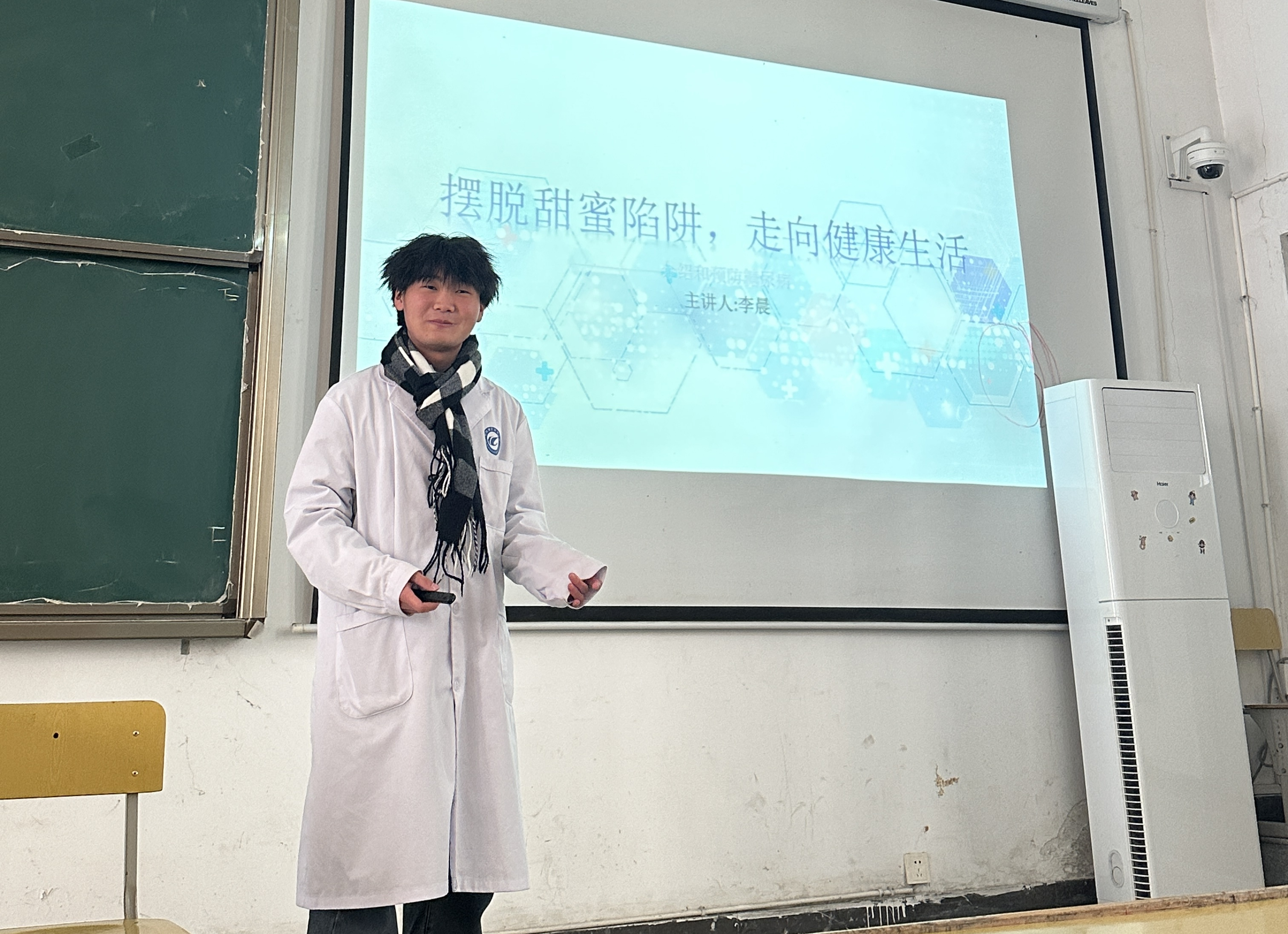 活动伊始,由主讲人23临床1班李晨向同学们介绍了糖尿病的诊断标准、临床症状等相关基本知识,并且从饮食、生活习惯等各方面讲述了预防糖尿病的各种小妙招,同学们在对糖尿病有了充分的认识的同时,学习到了在日常生活中有效的预防糖尿病的措施。活动期间,同学们认真聆听,积极互动,充分认识到“最好的医生是自己,最好的药品是健康。”的生活方式的重要性。