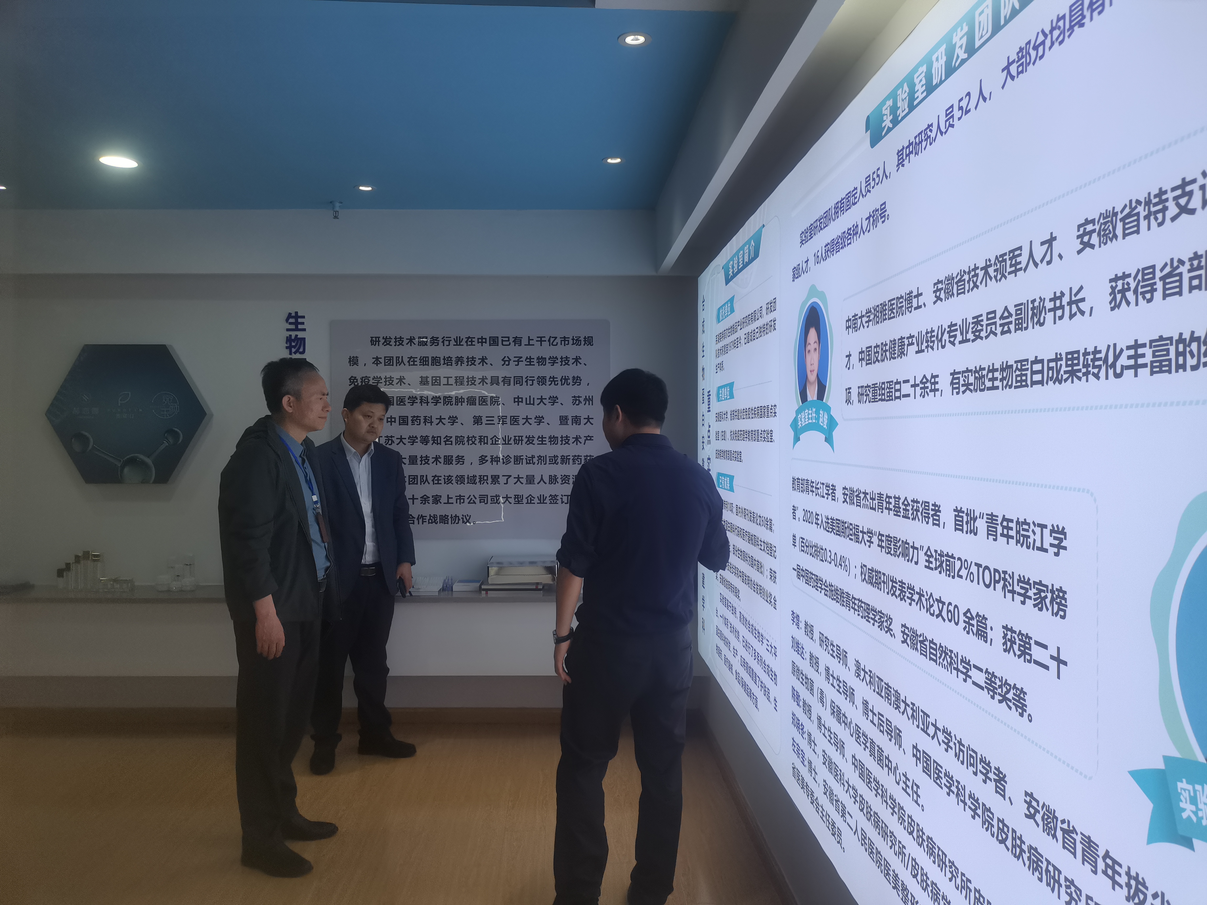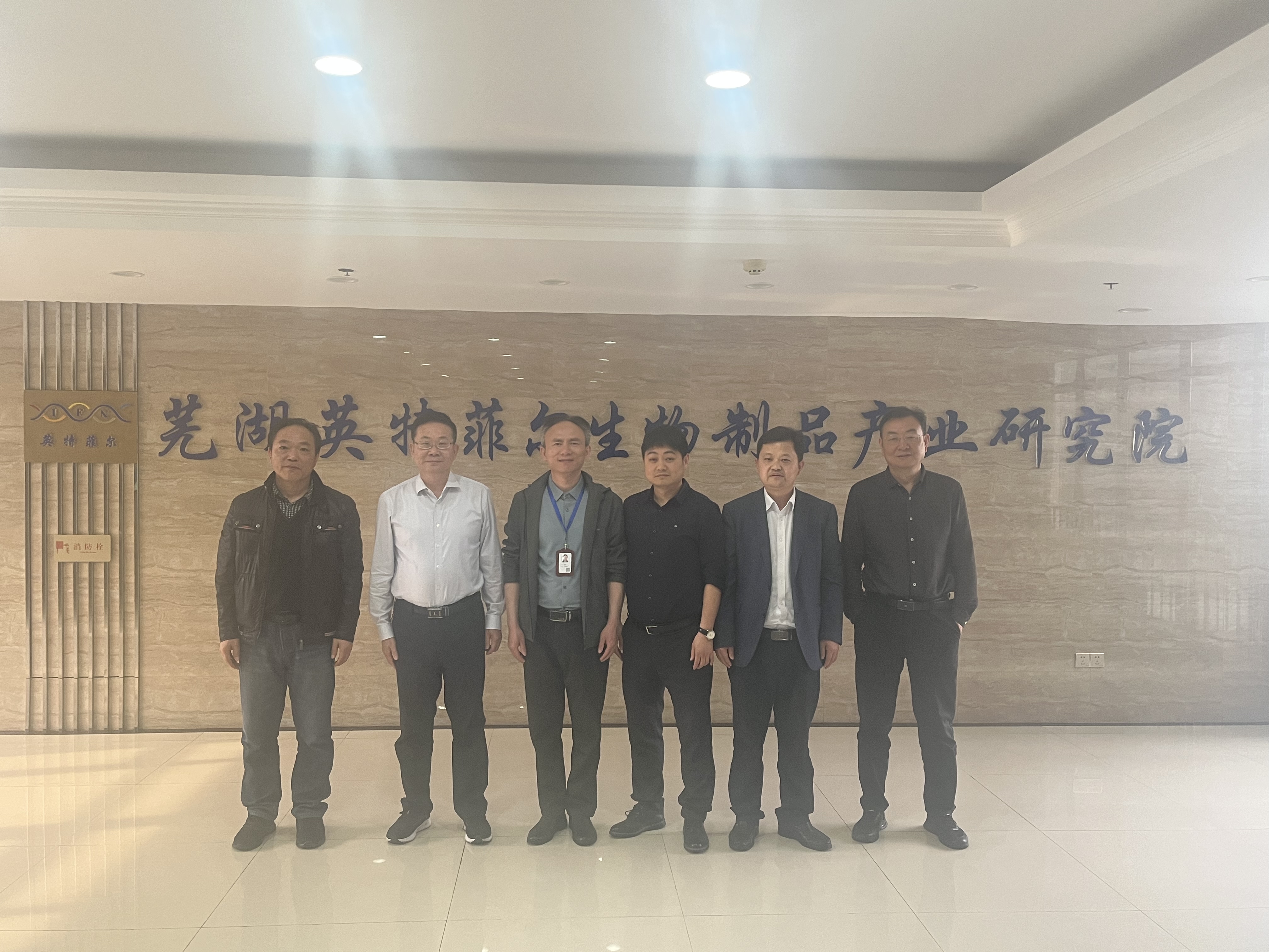 4月16日下午,校党委副书记、校长檀明一行调研芜湖英特菲尔生物制品产业研究院有限公司。公司董事长赵俊博士、首席科学家郭金华教授等进行了接待。