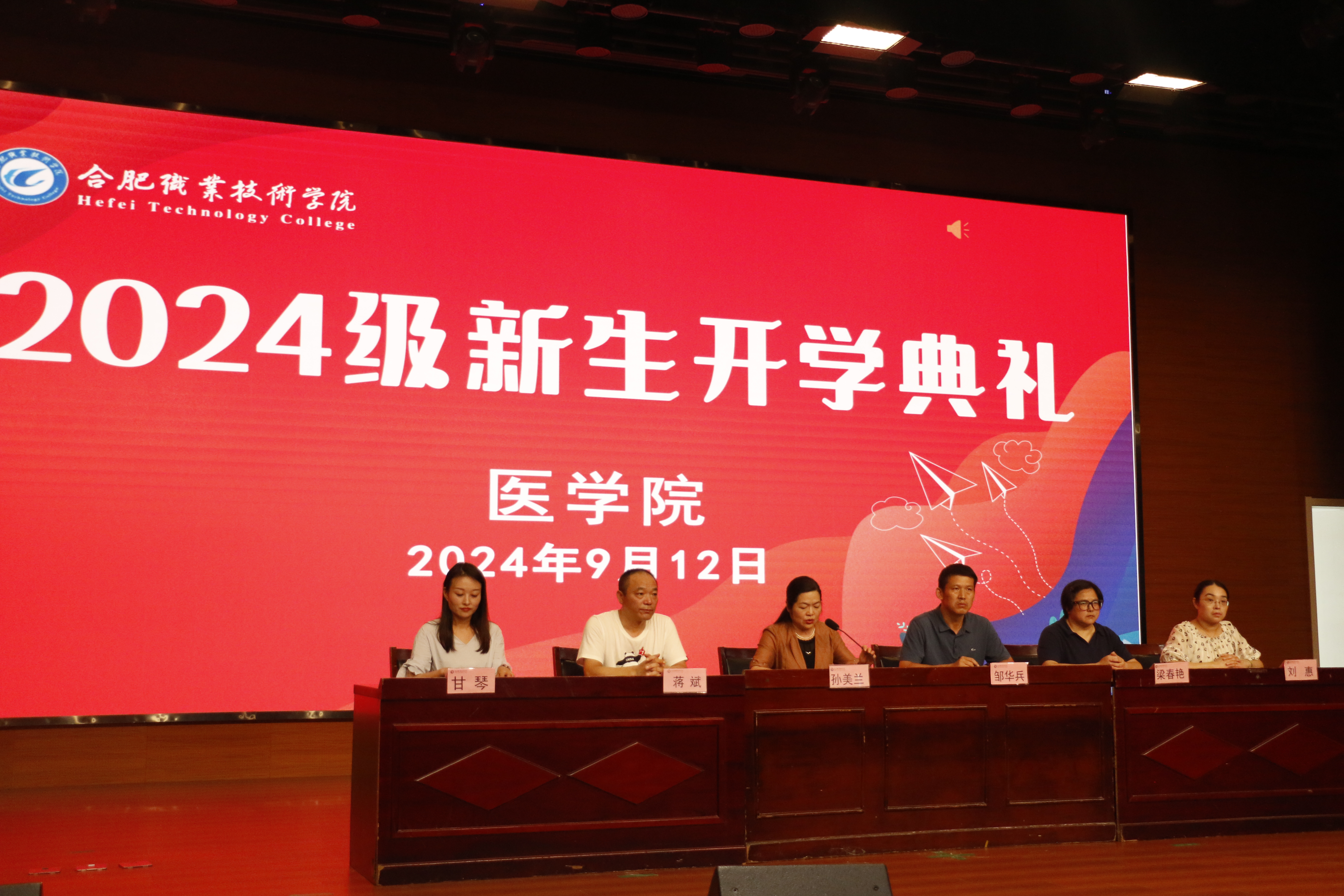 教师代表甘琴上台发言,希望同学们“不负青春,不负医学”,希望同学们不要误以为进了大学就能彻底放飞自我,希望同学们理论与实践并重,善于独立思考与广泛交流,学会自律,平衡好学习和生活。