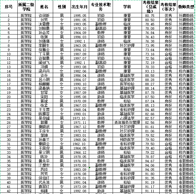 在线观看日本www一区根据《合肥职业技术学院教师教学质量考核办法》(合职院教〔2022〕76 号)等文件精神,于2024年6月底开展 2023~2024 学年教师教学质量考核工作, 现将考核结果公示如下,如有疑问请于2024年7月10号17点前反馈给在线观看日本www一区副院长梁丹丹。(供稿: 吕小明 初审:梁丹丹 终审:孙美兰)