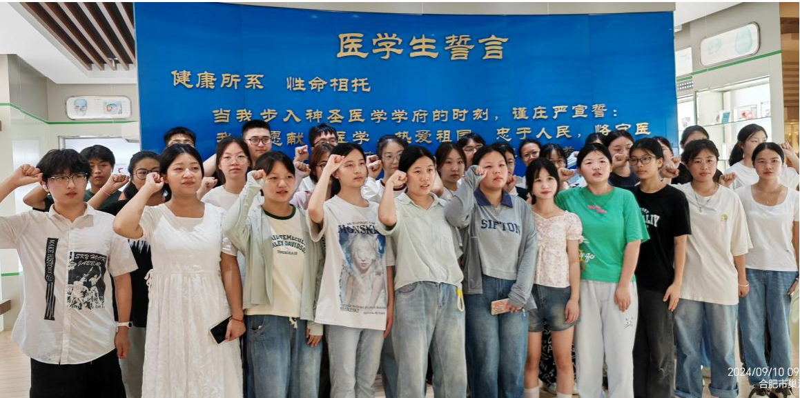 参观结束后各班级辅导员组织同学们,在科学馆内医学生誓言墙前神情庄严地许下誓言:”健康所系,性命相托。当我步入神圣医学学府的时刻,谨庄严宣誓,我志愿献身医学,热爱祖国,忠于人民,恪守医德……”誓言不仅在提醒着大家作为医学生的身份,更提醒着大家肩上的责任感,激励着同学们努力学习专业知识,为医学事业奋斗终生。