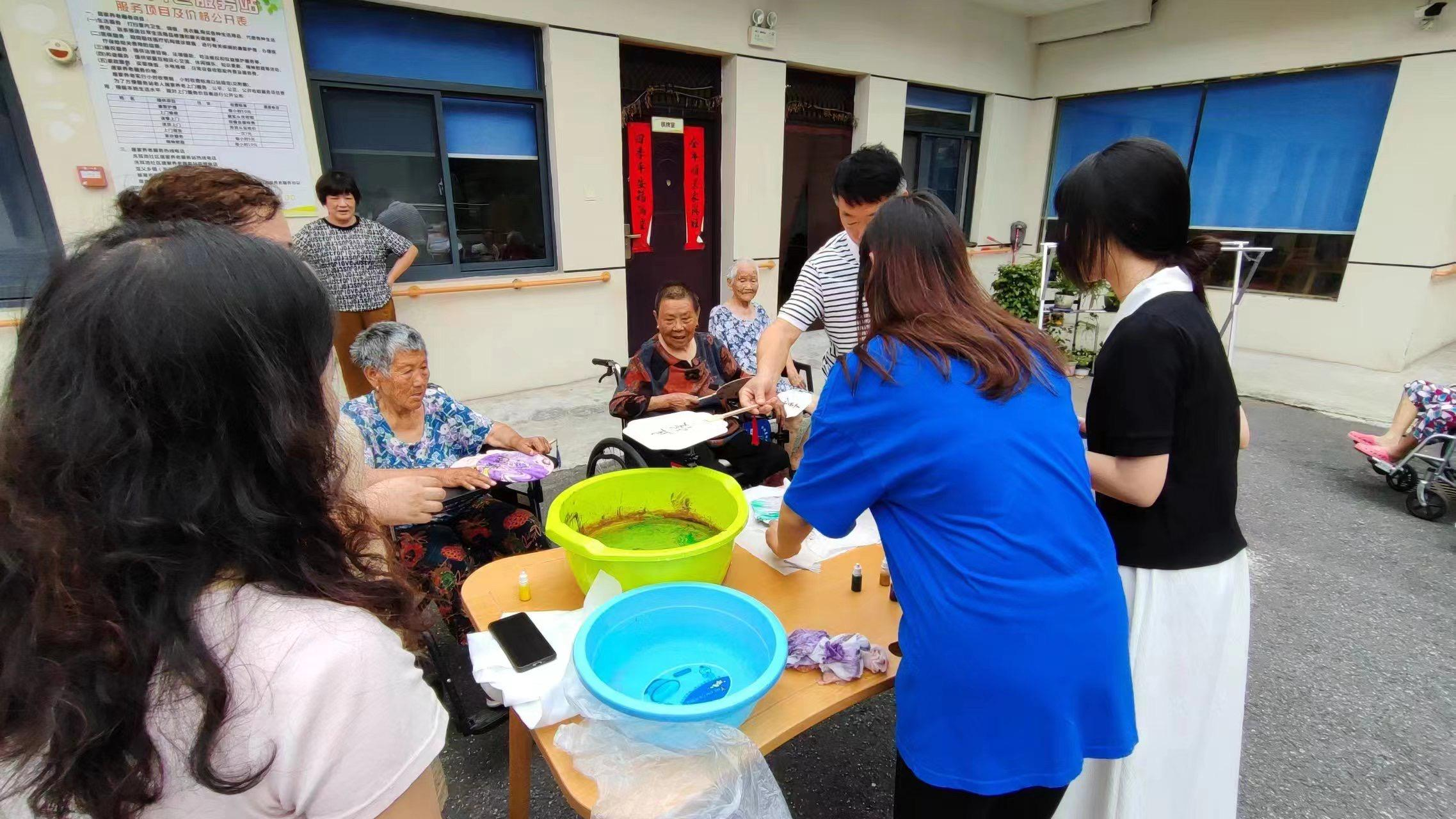 为了增添老人们的生活乐趣,丰富他们的文化娱乐活动,志愿服务期间,同学们在老师和工作人员的指导下,组织了一场“漆扇制作”活动。老人们踊跃参加,认真听志愿者们介绍操作方法,分配到制作工具之后就迫不及待地准备大显身手。尽管最后做出来的漆扇并不是每一个都很完美,但爷爷奶奶们看着自己的创作成果都喜笑颜开,养老院充满了欢声笑语。