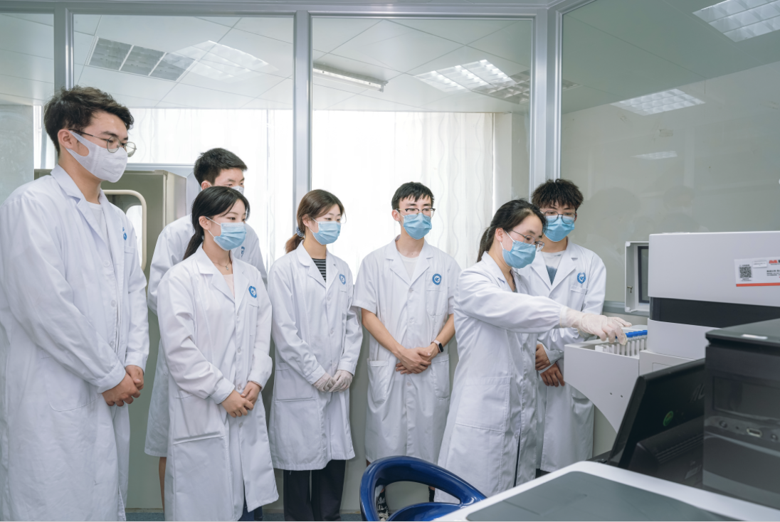 【校内外实训实习基地】医学检验技术专业配备一流的实验实训教学中心,拥有省级示范实验实训中心,包括9个专业实验室和1个医学检验中心实验室;与合肥金域检验实验室、合肥华澳医学检验实验室、合肥迪安医学检验实验室等开展校企协同育人,共建校内外实践教学基地。2019年至今与安徽医科大学附属肥东医院联合办学,成立医学检验专业肥东班,每年联合培养约15名学生。成立双导师实践指导团队,邀请多所三甲医院检验科主任作为行业导师参与学生学习和实习指导,建立课程实训、综合实训和顶岗实训三位一体考核评价体系,全面提升学生技能应用能力;实习教学医院:50家左右三甲规模医院,分布江浙沪皖等。