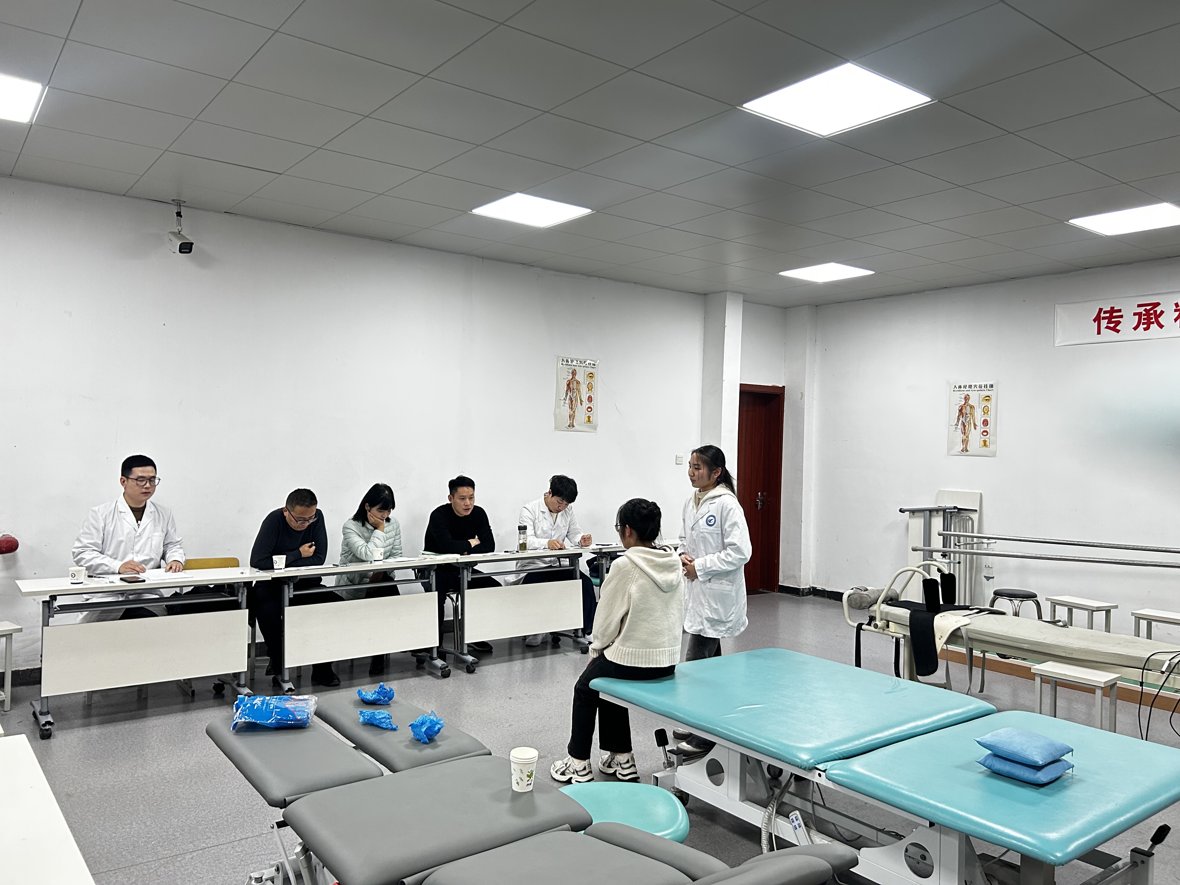 经过激烈角逐,周奕同学荣获一等奖,朱冰心、梁欣怡同学荣获二等奖,卢庆梦、董雨晴、柏家园学荣获三等奖,柴林淇、王杰等6位同学荣获优秀奖。赛后参加2024年安徽省职业院校技能大赛康复治疗技术赛项的6位同学分成两组进行了模拟比赛展示,几位专家针对2组选手进行了针对性的点评及指导。
