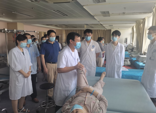 王杰才先后走进医院康复医学科、检验科、心血管内科等科室,看望正在各科室上班的老师们和今年实习的同学们,与师生亲切交谈,详细了解了老师们的工作实践情况。王杰才对放弃暑期休息、坚持医院实践锻炼的老师们表示亲切慰问,对老师们的工作态度给予充分肯定,勉励他们在一线实践中真做实干、勤学多干,切实提高实践质量,努力提高专业技能水平,力争学有所用,将实践成果有效地运用到日后教学与科研工作中去。