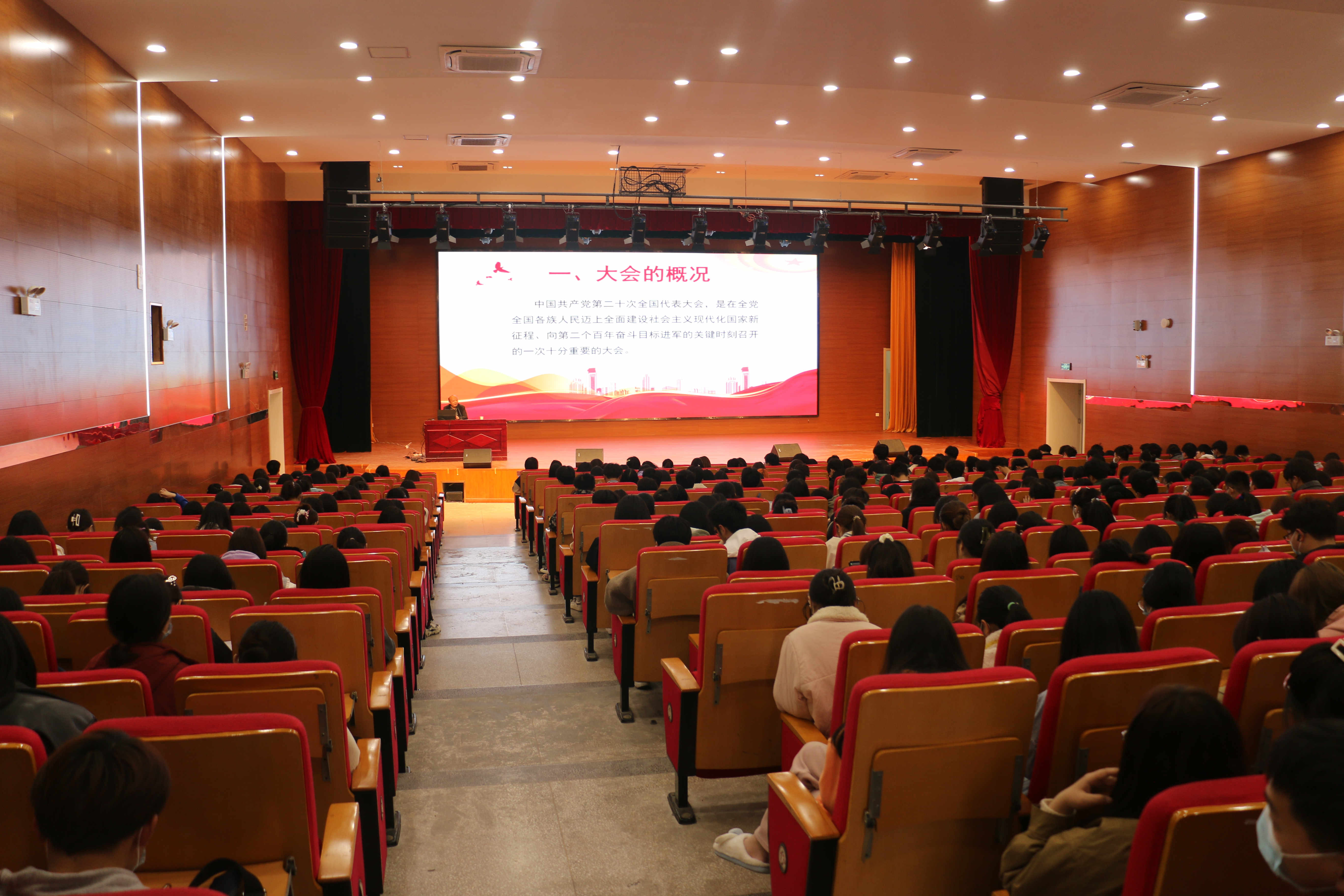本次专题思政课宣讲活动围绕理想、担当、奋斗、青春等方面阐释党的二十大精神,宣传好三年抗疫成就,科学回应学生对XBB变异株输入风险和“二次感染”的担忧,如何提高“乙类乙管”疫情防控意识,大学生心理健康相关内容,21级学生就业指导相关内容。通过将学生思想政治工作的实践融入医学专业课程,切实提升专题思政课宣讲活动的感召力。