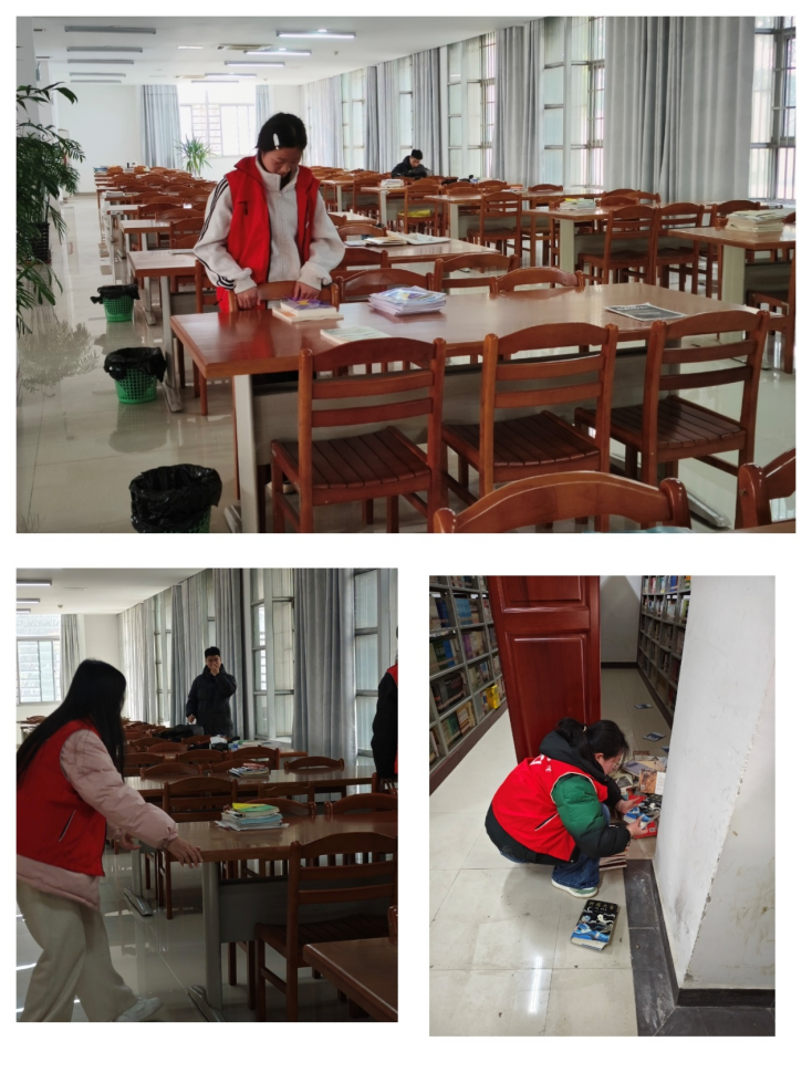 经过一个多小时的“奋战”,报刊室及自习室焕然一新。