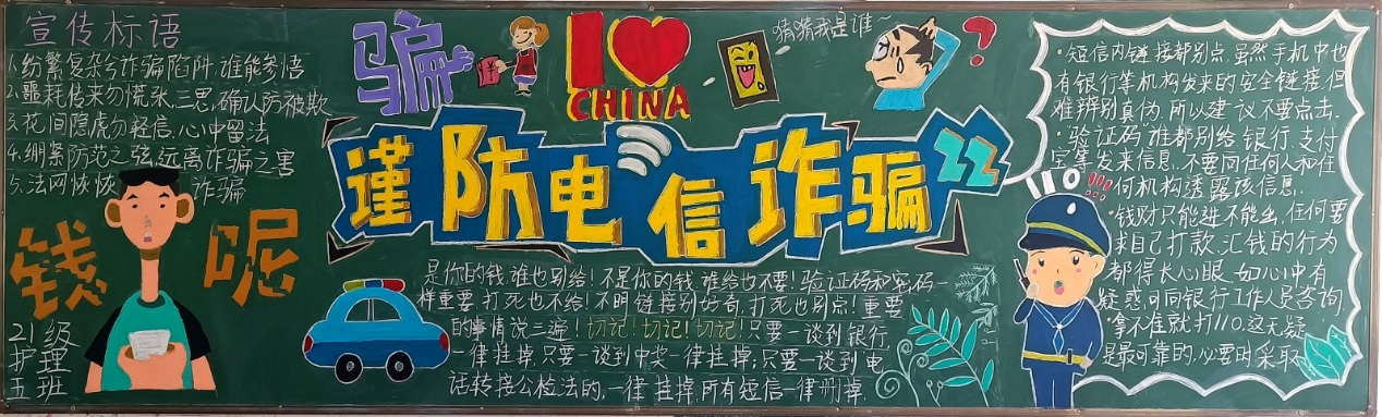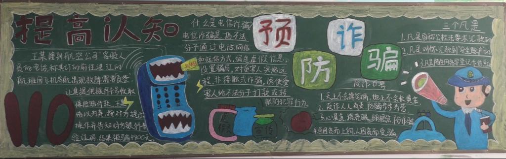 为切实提高在线观看日本www一区学生防范和识别电信网络诈骗的意识和能力,保护学生财产安全,促进校园文明建设。10月15日,在线观看日本www一区举行了以“预防电信网络诈骗”为主题黑板报评比活动,本次活动21级、20级和19级五年制班级学生在自己代管班级或分配班级进行黑板报创作。