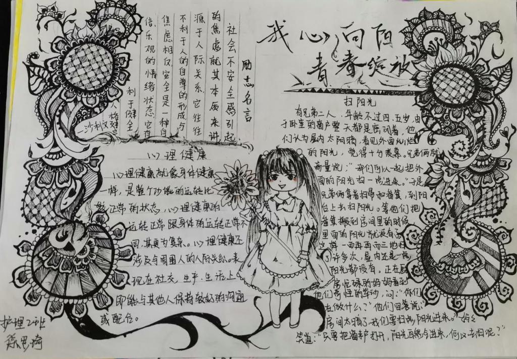 为了普及心理健康知识,提高大学生心理素质,促进大学生关注自身心理健康,营造良好的心理发展环境,充分发挥“十大”育人体系中“心理育人”的重要功能。在5·25大学生心理健康教育日,在线观看日本www一区开展了以“我心向阳,青春绽放”为主题的手抄报展览活动。