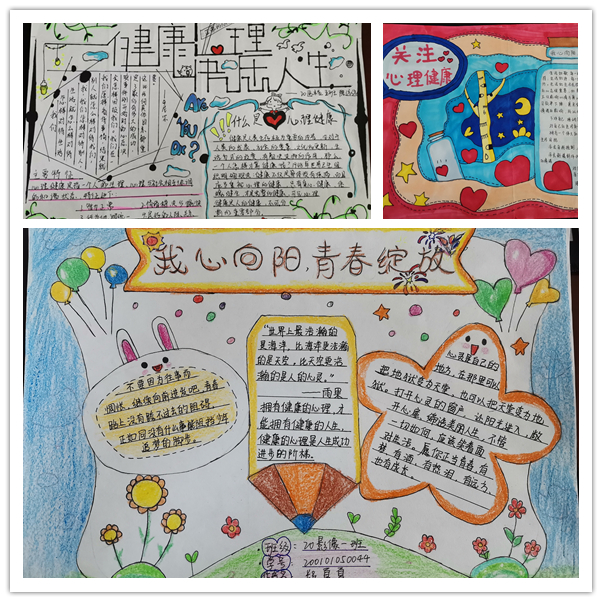此次活动得到了同学们的积极响应,大家提交的手抄报图版多样,内容丰富新颖,为大学生心理健康日增添了一抹色彩。同学们自己设计、制作心理手抄报,宣传了心理健康的理念,展示了健康的心理态度,帮助同学们正确了解自我、悦纳自我。